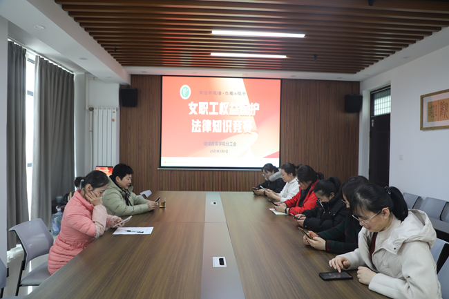3月4日下午,学院会议室内气氛热烈,女职工权益保护法律知识竞赛通过学院官方小程序准时开赛。竞赛以“学法护权益,巾帼e同行”为主题,依托线上平台设置“限时闯关”“实时排名”等创新环节,打造沉浸式学法体验。竞赛题库涵盖《中华人民共和国妇女权益保障法》《女职工劳动保护特别规定》等法规,女职工们通过手机端限时答题,即时显示成绩与解析。学院分工会主席杨天宏在线上致辞中强调:“数字化普法是新时代权益保护的重要抓手,学院将持续探索‘互联网+法治教育’模式,为女职工权益护航注入新动能。”