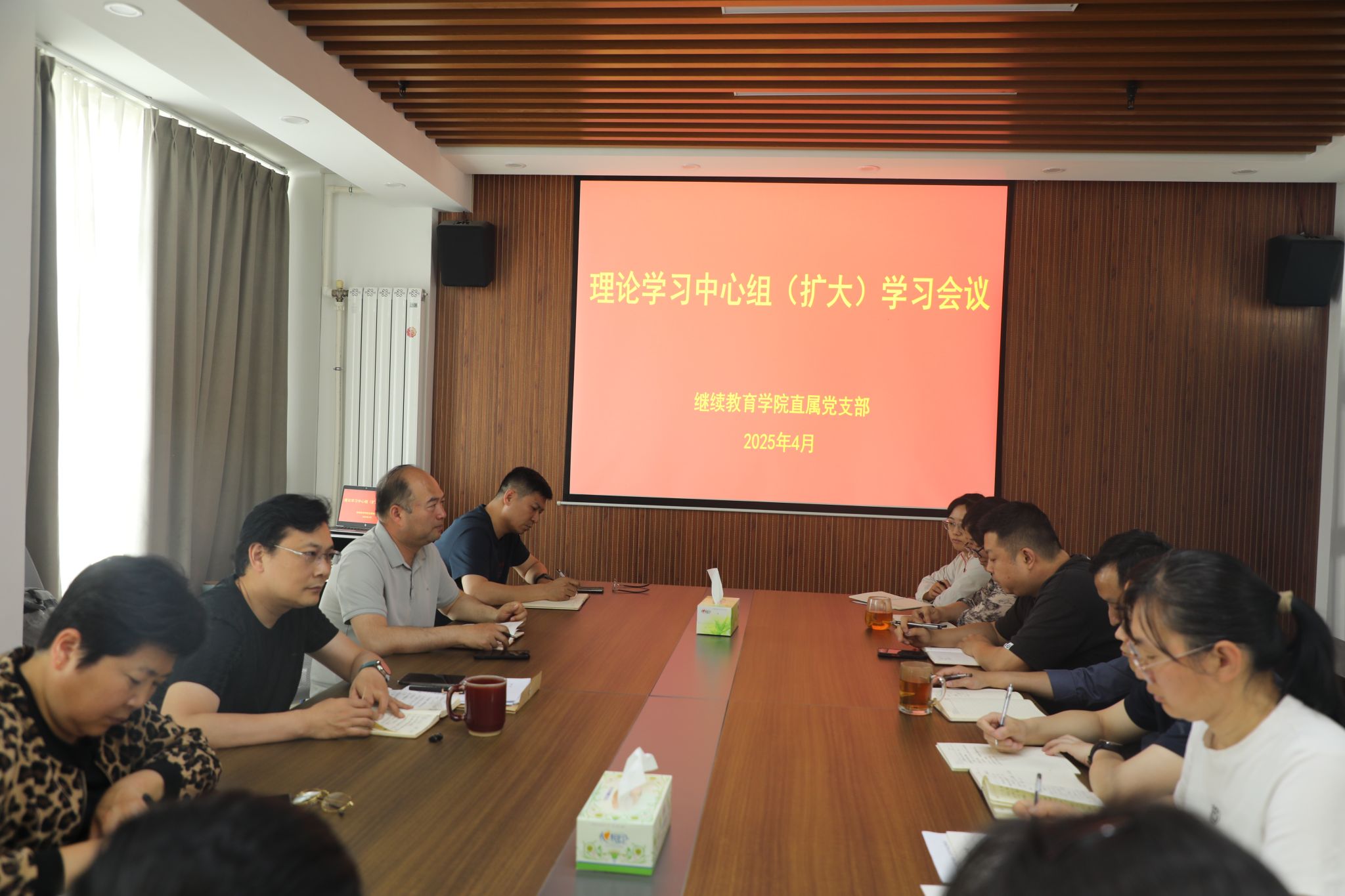 4月30日下午,继续教育学院直属党支部召开理论学习中心组(扩大)学习会议。全体教职工参加会议。会议由直属党支部书记杨天宏主持。