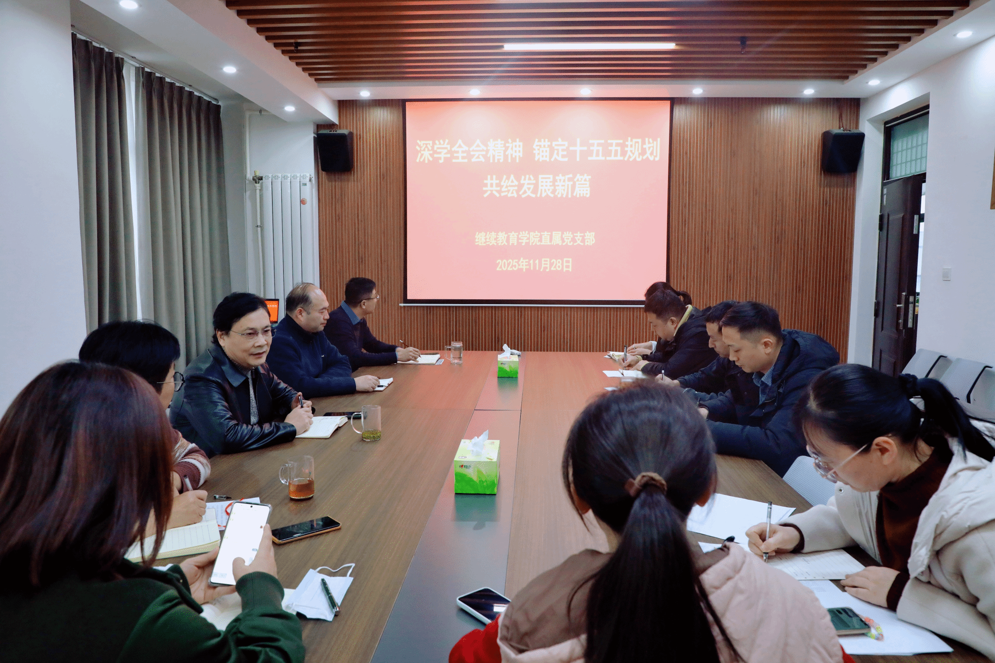 11月28日上午,继续教育学院直属党支部以“深学全会精神 锚定“十五五”规划 共绘发展新篇”为主题,组织开展主题党日活动,通过“微视频+微实践”的形式,将理论学习与学院发展实际紧密结合,推动党建与业务深度融合。全体党员及科级以上干部参加,活动由直属党支部书记杨天宏主持。
