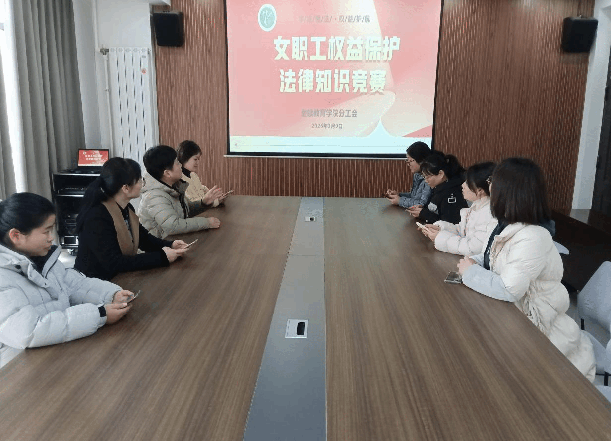 3月9日,活动聚焦于权益保障与法治素养提升。学院组织女教职工在会议室集中参加了“学法懂法,权益护航”线上法律知识竞赛。竞赛内容紧密结合《中华人民共和国妇女权益保障法》《女职工劳动保护特别规定》等法律法规,通过以赛促学的方式,引导女教职工深入学习相关法律知识,切实增强了大家依法维护自身合法权益的意识和能力。