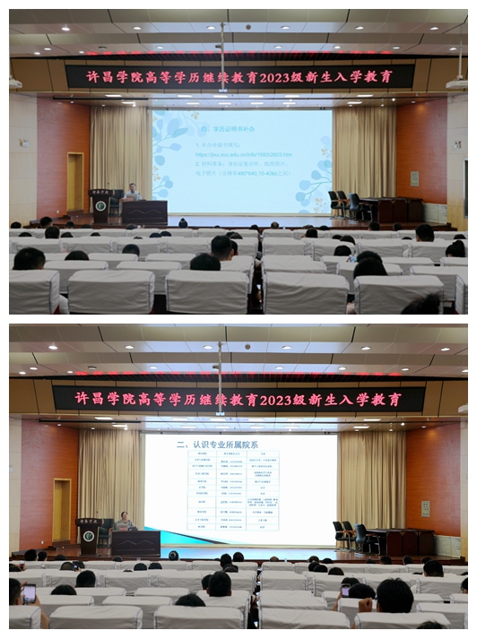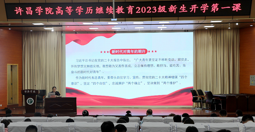 学校教师代表、继续教育学院全体人员、校外教学点负责人、2023新生代表等800余人分别在主会场、分会场现场参加典礼,来自许昌学院高等学历继续教育本、专科各专业的2000余名新生线上参加典礼。