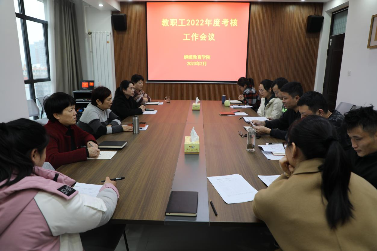 为充分发挥年度考核的激励、鞭策和导向作用,营造扎实工作、担当有为、积极进取的工作氛围,按照学校下发的《关于开展2022年教职工年度考核工作的通知》要求,2月15日,继续教育学院在606会议室召开2022年度考核工作会议。继续教育学院领导班子及全体教职工参加会议。会议由直属党支部书记张雪洁主持。