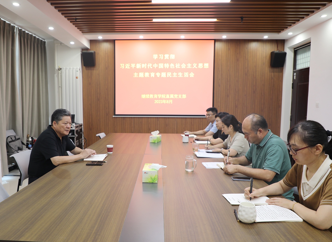 高金星在点评讲话时指出,此次专题民主生活会会前准备充分,单位风气好,劲头足,和谐向上,班子及个人查摆问题全面,对照检查深刻,相互批评直截了当、一针见血,案例剖析精准,整改措施具体,努力方向明确,效果良好。下一步,一要持续强化党的创新理论学习。要坚持用习近平新时代中国特色社会主义思想武装头脑、指导实践。紧跟新形势,丰富学习形式,坚持自学、积极交流研讨,从学习中统一思想,推动工作。增强大局意识和系统观念,在学校发展大局中找出继续教育发展切入点,在兄弟院校中找优秀成功经验。二要持续整改,推动工作高质量发展。要坚持问题导向,狠抓整改落实,扎实做好专题民主生活会“后半篇文章”,以实实在在的整改成效展现新担当新作为。要切实发挥党建工作的引领和推动作用,将党的决策部署融合到日常管理、教育教学工作中,破壁垒、汇资源、提质效,探索“三教”协同创新,融合发展途径,推动继续教育事业规范高质量发展。三要坚持全面从严治党。要加强领导班子建设,领导班子凝心聚力,形成团结和谐氛围。要全面夯实管党治党责任,筑牢防线,守住底线,不碰红线,持之以恒正风肃纪。四要压紧压实意识形态工作责任。要拧紧思想之弦,强化责任落实,筑牢意识形态工作前沿阵地,预防管控处置相结合,牢牢掌握意识形态工作领导权和主导权。