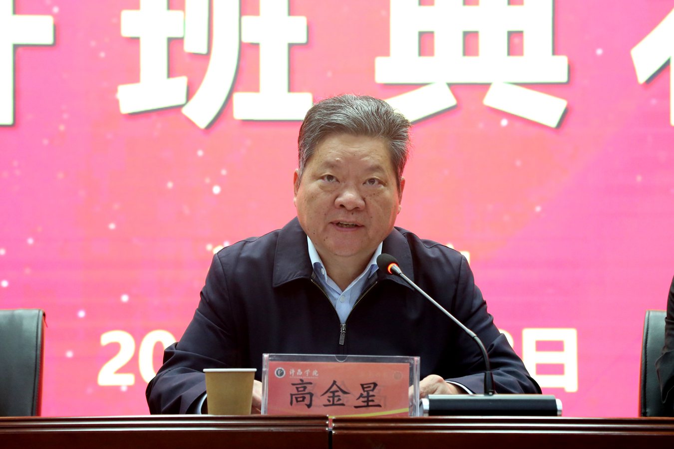 在市级骨干开班典礼上,高金星首先代表学校对参训学员表示欢迎,并向学员简要介绍了我校办学基本情况和举办“国培计划”教师培训项目的有关情况。他指出,“国培计划”作为落实高质量教育体系建设任务的具体行动,意义重大、影响深远。他要求承担培训项目的专家团队和管理团队要进一步增强责任感和服务意识,提高教学的针对性和实效性,努力为学员提供良好的学习和生活环境。他勉励参训学员珍惜此次学习机会,在教学技能、教学理念方面有明显提升。实现一人参训带动学校其他人的共同提升,起到示范引领的作用。