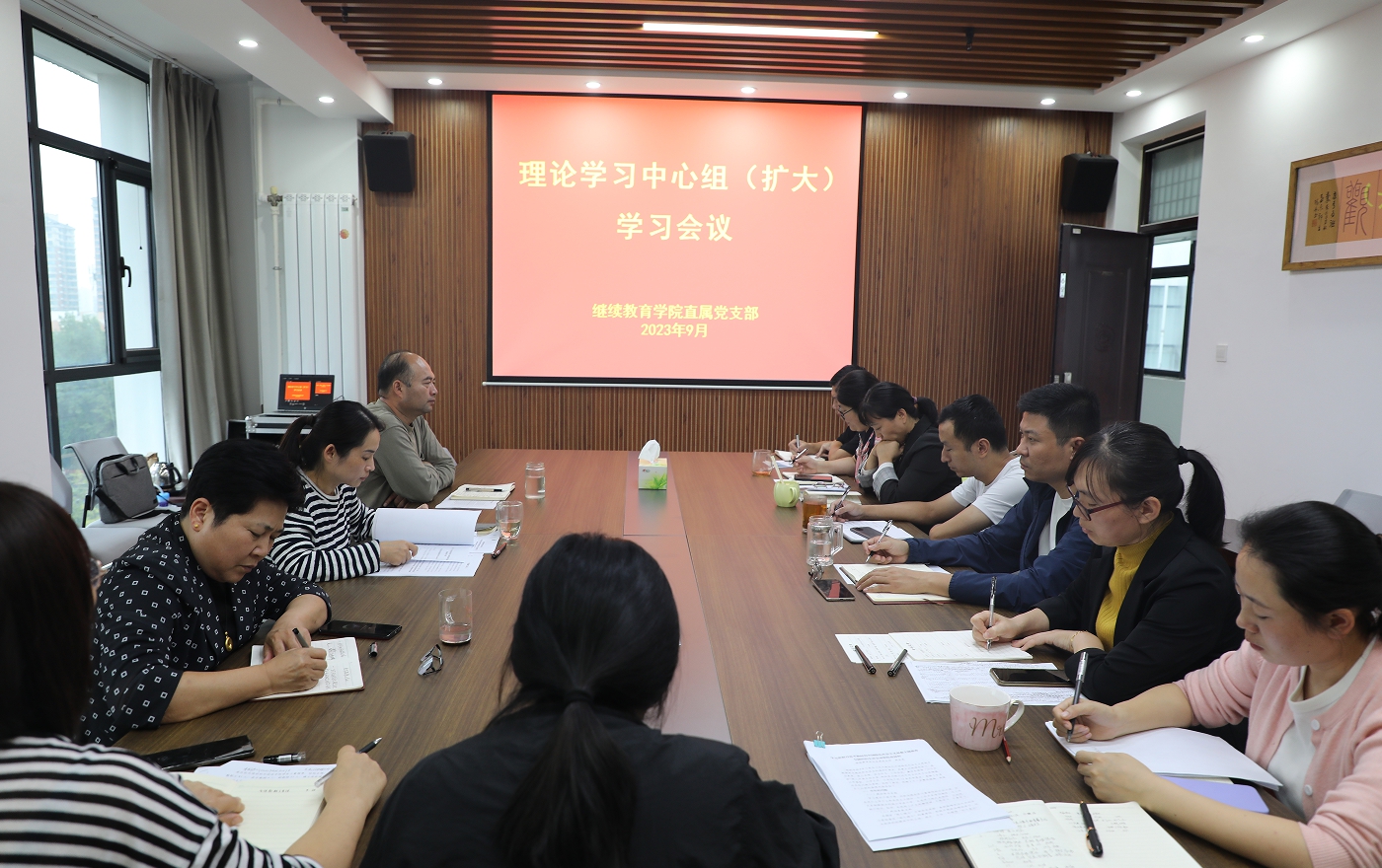 为巩固和拓展学习贯彻习近平新时代中国特色社会主义思想主题教育成果,9月28日,我院直属党支部在教师活动中心606会议室召开理论学习中心组(扩大)学习会议。全体教职工参加会议。会议由院直属党支部书记张雪洁主持。