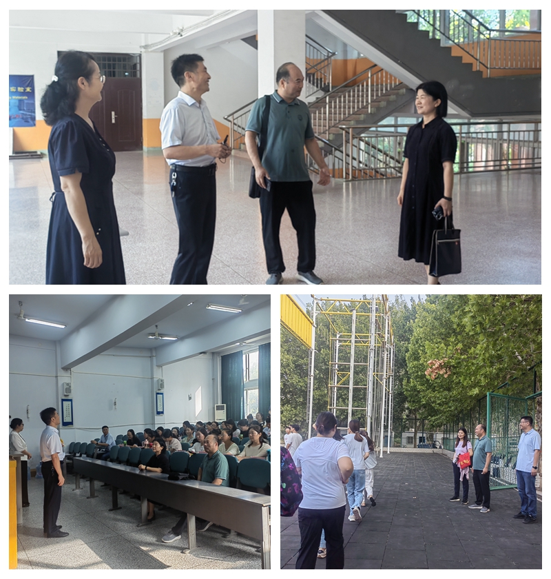 9月10日上午,在学校A合15、16教室,高均昭查看了学员到课情况、教师课前准备等,并同授课专家、管理团队教师和学员进行了交流,详细了解培训项目的开展、学员学习等情况。高均昭一行随机听了许昌市教育科学研究中心张红娜老师做的《义务教育教学课程标准(2022版)》的“学、思、悟”专题讲座,并在学校素质拓展园查看了学员进行的素质拓展活动。9月12日上午,在建安区第三高级中学(初中部),高均昭查看了我校项目县(宝丰)初中英语学员跟岗研修情况,重点听取了该校“三名”工作室建设的汇报。