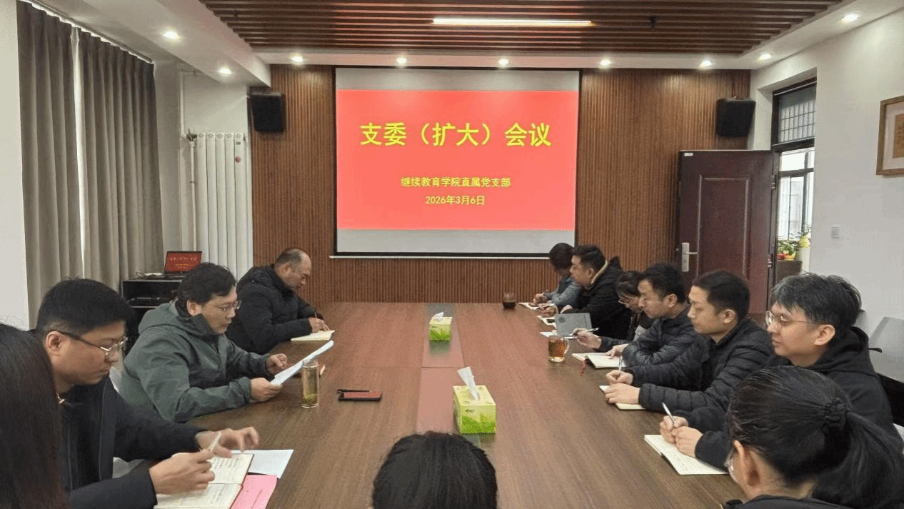 为深入学习贯彻习近平总书记关于树立和践行正确政绩观学习教育的重要讲话和重要指示精神,全面落实校党委《关于在全校党员中开展树立和践行正确政绩观学习教育的实施方案》要求,3月6日,继续教育学院在606会议室召开支委扩大会议,专题启动部署学院树立和践行正确政绩观学习教育工作。全体教职工参加会议。会议由直属党支部书记杨天宏主持。