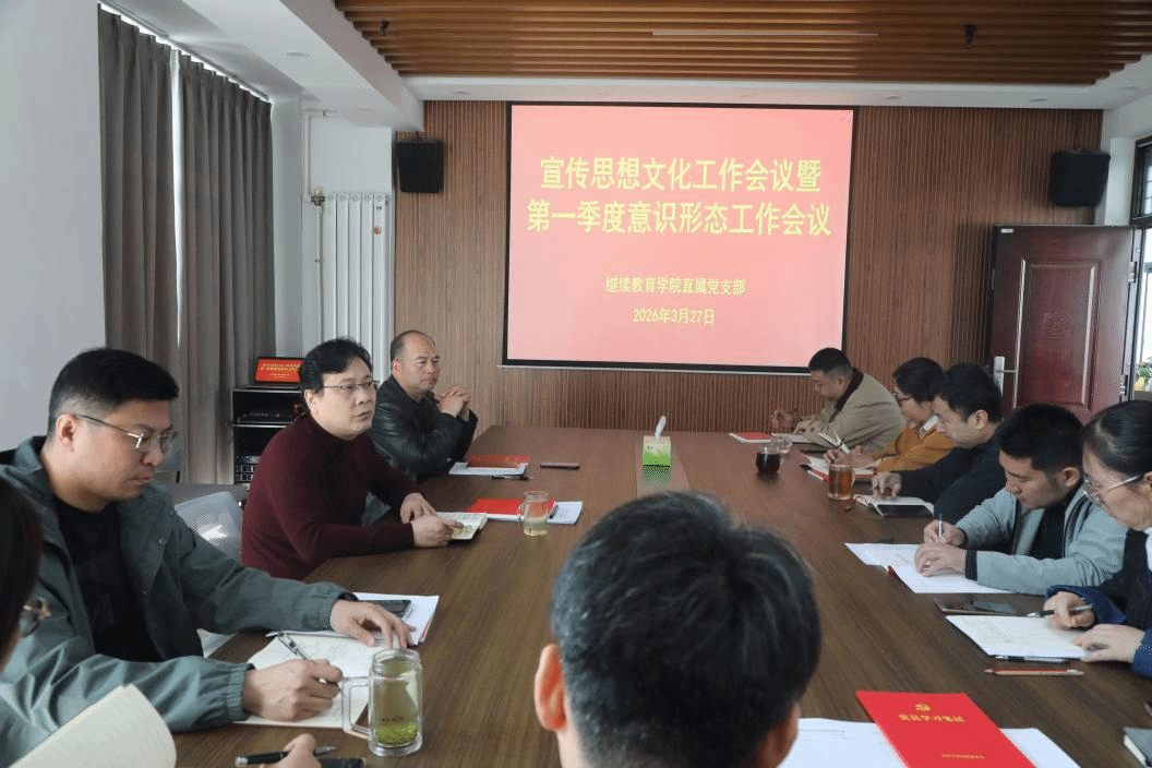 3月27日上午,继续教育学院在606会议室召开宣传思想文化工作会议暨第一季度意识形态工作会议。全体教职工参加。会议由直属党支部书记杨天宏主持。