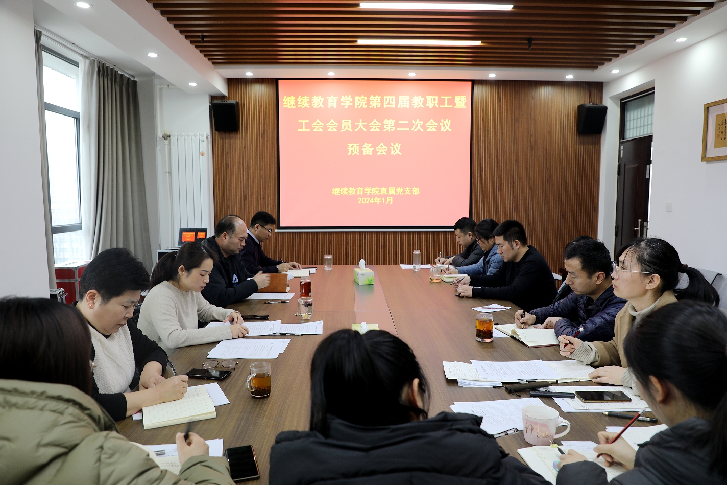 2024年1月17日下午,我院在教师活动中心606会议室召开第四届第二次教职工暨工会会员民主管理大会。全体教职工参加会议。会议由继续教育学院直属党支部书记、分工会主席张雪洁主持。