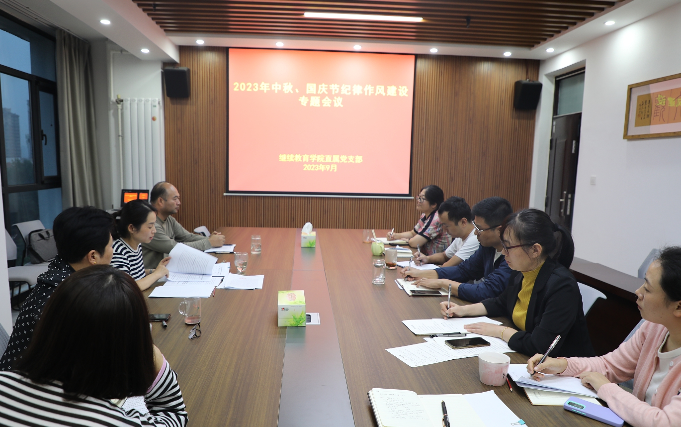 为深入落实中央八项规定精神,持续巩固纪律作风建设成果,营造风清气正的节日氛围,9月28日下午,我院在教师活动中心606会议室召开中秋、国庆“双节”纪律作风建设专题会议。全体教职工参加会议。会议由院直属党支部书记张雪洁主持。