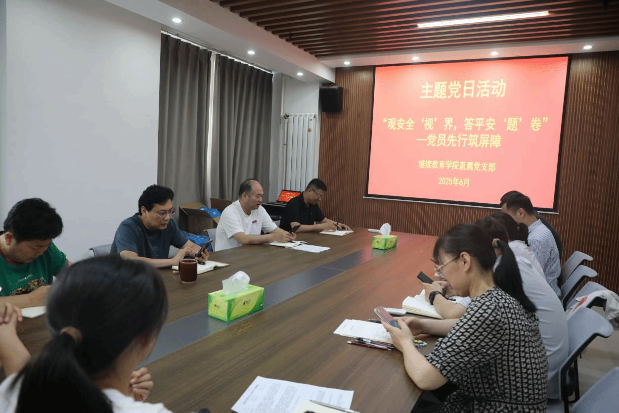 6月是全国第24个“安全生产月”,为进一步强化教职工安全责任意识,了解安全防护的技能和知识,6月9日,我院开展了“观安全‘视’界,答安全‘题’卷”主题党日活动,全体党员参加。会议由直属党支部书记杨天宏主持。